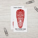 An attractive business card with a bold original hand drawn Tiki Mask style motif Company name and business type on the front with name and other contact details on the back with three Tike mask motifs.