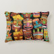 The cushion is small to medium sized. It can be washed. It is well constructed. The material used is pleasant and feels decent quality. It has a very slight plush feel which is good. It is well labelled and its care clearly stated. Theres nothing not to like about it. All in all a good item. The deduction of one star overall is due to long delays in delivery to the UK. It's not clear if this was due to Zazzle or somewhere else in the chain as I did not receive status updates of dispatch or progress. I cannot comment anymore on that other than to say that was our experience but it may not be the same for you. The printing was surprisingly close to what we were expecting. Its an art piece and on material so its hard to assess the precision of printing but it seems close to the original. The soft lines are reproductions of the original. The colour is a fair reflection of the painting. This was printed in the US and it looks like US quality. No issues.