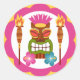 Tiki Statue with Torches emblem. Digital cartoon illustration.