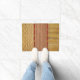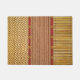 Tropical island tiki style with faux textures of bamboo, woven reed, and rattan,,, along with stripes of Polynesian style tiki icons in red, orange, brown.