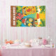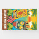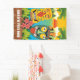 Fun and colourful Tiki banner with Tiki masks, palm trees, tropical plants and sunset on the ocean. Customise the text at the bottom with any words for your event: birthday party, retirement party, luau or fundraiser.