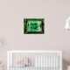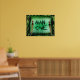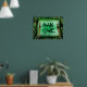 Man Cave art painting in green to black colors with tiki torches on the sides. Man art for his cave. Features a cave wall with early mans signature similar to what a cave man painting. Art for an underground dwelling or dweller where men hang out and do manly things