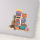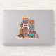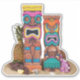 Custom-cut vinyl sticker with an image of two colourful wooden tiki totems, an orchid lei, a pineapple, a bunch of grapes, a lemon slice and assorted seashells. See the entire Shipwreck Sticker collection in the INVITES | Stickers & Labels section.