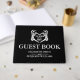 Elegant and gothic "'til death do us part" wedding guest book in black and white with a skeleton hand forming a heart. For matching spooky supplies, be sure to visit our collection to find more coordinating items that match this design.