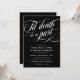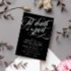 Elegant dark Halloween or goth wedding invitation with Til death do us part written in a swirly white calligraphy script. Add your invitation wording in white against a black background.