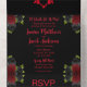 This unique Gothic style wedding invitation is striking and bold, with a black background that exudes an air of mystery and sophisticated elegance. Deep red and black roses adorn the 4 corners of the invitation, which adds a romantic, timeless touch to the design. The text, which is totally customisable in every way, is shown in matching red. This invitation will set the tone for a memorable and unique wedding celebration. Edit text from the product page or to change font styles or colour, use the design tool.