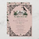 This elegant gothic "Til Death Do Us Part" Irish bridal shower invitation features hand-drawn Irish & gothic themed illustrations in black ink, showcasing 2 skulls and a black crow adorned with green roses, leaves, berries, wildflowers and green clovers. The back features a beautiful pattern with these elements. Elegant blush pink background. All text is editable.