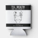 Black and white "til death do us party" bachelor / bachelorette party can coolers.  Skeleton bride and groom design that is great for a Halloween themed wedding event.  Personalise the text and colours for your event.
