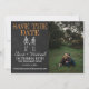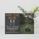 An amazing photo save the date that is accented with a chalkboard design and white and orange fonts. Perfectly coordinates with the Til Death wedding collection.