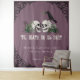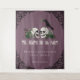 This elegant gothic "Til Death Do Us Part" Irish bridal shower party décor backdrop features hand-drawn Irish & gothic themed illustrations in black ink, showcasing 2 skulls and a black crow adorned with green roses, leaves, berries, wildflowers and green clovers. Elegant purple background. All text is editable.