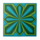 Tile, Abstract Flower, Cyan Chartreuse Green Tile