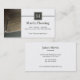 This construction flooring business card has a photograph on the left side of the grooves in some grey mortar left from a trowel. In the background, you can see some tile that is being laid. On the right, there is a pewter grey square at the top with two stripes behind. There, you can easily customise the monogram initial. Below and on the backside, you can personalise all of the details of the business.