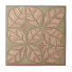 This Decorative ceramic tile features a stylised ovate leaf design. The colours are mauve and muted avacado.