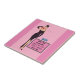 (See Product info. & Options, for More Information). Art: Tiffany in Long, Black, Slit evening Dress, with Long Cigarette in her Mouth & Orange/White Cat on her Right-Shoulder, with unneditable Slight Horizontal Rectangular, Medium-Pink & Black(Text & Border) Party Label to her Left & My Blue & White 'RFPM ©️Designs / Roseanne Fischer Pears Mohamed Designs' Label, centred above it, all on Light-Pink, on Medium-Pink background.