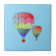 Two hot air balloons. Rainbow chevrons for red, orange, yellow, green, and blue. Blue background for sky.