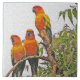 ADD THESE TILES TO YOUR TROPICAL DECO. PHOTO OF THREE ORANGE PARROTS ON TREE BRANCH. PHOTO HAS BEEN DIGITALLY MANIPULATED FOR EFFECT.
