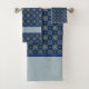 Tiled Blue Flowers Pattern Bath Towel Set