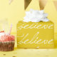 Holiday wrapping paper with tiled white text that reads I Believe! You can customise the gold background to be any colour you want.