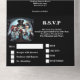 With its tear-off RSVP strip, our invitation is not only spooky but also practical, ensuring a seamless response from your beloved guests. Editable and budget-friendly, it allows you to personalise every detail without breaking the bank. The Skeleton Bride and Groom standing in a graveyard featured on the design add a whimsical touch, while the ghoulish skeletons wearing formal tuxedos and soft flowing chiffon skirts evoke an aura of elegance and playfulness.