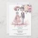 Till Death do us Part Gothic themed wedding invitations by Ricaso - designed featuring a bride and groom skeleton couple and pink flowers. A wonderful weirdly cute wedding announcement invite for the unique goth couple