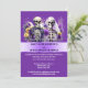 Introducing our budget-friendly invitation that sets the perfect tone for your spooky celebration! Picture a charming skeleton bride and groom standing side by side against a purple background.