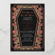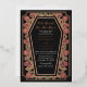 Make a bold statement of eternal love. This gothic wedding invitation features ‘Till Death Do Us Part’ in a coffin-shaped frame, adorned with thorns, roses, and rose gold accents against a black background. Perfect for a hauntingly romantic celebration! Personalise the text, font, and background colour to suit your design preferences. Matching Items in our shop for a complete party theme. Please note that the rose gold on the BACK of the invitation is NOT real foil and is printed in flat colours.