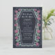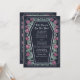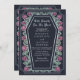 Make a bold statement of eternal love. This gothic wedding invitation features ‘Till Death Do Us Part’ in a coffin-shaped frame, adorned with thorns, roses, and silver accents against deep blue background. Perfect for a hauntingly romantic celebration! Personalise the text, font, and background colour to suit your design preferences. Matching Items in our shop for a complete party theme. Please note that the silver on the invitation is NOT real foil and is printed in flat colours.