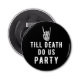 Till death do us party bottle openers in black with a skeleton hand and white letters. Small spooky party favours for a bridal shower, bachelorette, wedding party, or any themed party. Be sure to visit our collection to see more coordinating items that match this design for your special event.