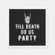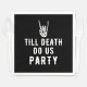 Till death do us party napkins in black and white with a skeleton hand. Spooky party table decorations for a bridal shower, bachelorette, wedding party, or any themed party. Be sure to visit our collection to see more coordinating items that match this design for your special event.