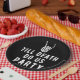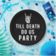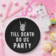 Till death do us party paper plates in black with a skeleton hand and white letters. Spooky party table decorations for a bridal shower, bachelorette, wedding party, or any themed party. Be sure to visit our collection to see more coordinating items that match this design for your special event.