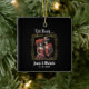 Celebrate eternal love with this hauntingly elegant Till Death double-sided ornament. The front features a gothic skeleton bride and groom framed in gold art deco accents with deep red roses, while the back displays your own dramatic wedding photo for a personalised touch. Perfect for gothic weddings, Halloween celebrations, or Day of the Dead–inspired unions, this keepsake captures love that lasts beyond time. Personalise with your names and date for a stunning memento or gift that symbolises forever devotion with dark, romantic flair.embellished with vibrant colours, ornate patterns, and delicate floral motifs. Their eye sockets are adorned with artistic designs, and their smiles are warm and inviting, despite their skeletal appearance.