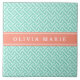 Tilted Dark Mint Greek Key Pattern Coral Name Tile