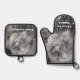 Tilted Head Chicken Monochrome Photo Oven Mitt & Pot Holder Set