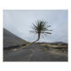 The famous sloping palm tree on the island of Lanzarote, in the Canary Islands. In a volcanic setting.