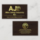 An elegant timber wood cover is accentuated by a gold handyman tools border line near the base of the card. At the top is your monogram name initials with a gold electric saw logo you can use. Just below this lies the business name and the contact details.