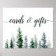 Designed to match our Timber Grove wedding collection, this elegant woodland chic sign directs guests to your card or gift table. Features "cards & gifts" in off-black calligraphy lettering with a bottom border of rustic watercolor pine trees in shades of hunter and forest green.