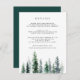 Designed to coordinate with our Timber Grove wedding collection, this elegant winter wedding enclosure card features a snowy forest scene with watercolor pine trees in shades of sage and hunter green. Customise with important details for your wedding guests, like welcome receptions, wedding weekend details, accommodations, transportation and your wedding website. You can even upload a map to the reverse side.