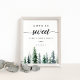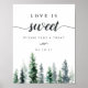 Invite guests to grab some sweets with our charming rustic wedding dessert table sign. 11x14 dessert table sign features a bottom border of watercolor pine trees in rich shades of hunter and forest green, with "love is sweet, please take a treat" in off-black calligraphy script and block lettering. Personalise with your wedding date underneath the inscription. Designed to match our Timber Grove collection for autumn or winter weddings in forest or woodland settings.