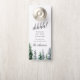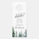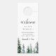 Add these personalised door hangers to your hotel welcome bags. Designed to match our wintry Timber Grove wedding collection, this double-sided design features a welcome message on one side and a "do not disturb" message on the other. Personalise with your custom message and names, accented by green watercolor pine trees along the bottom.
