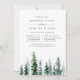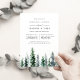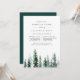 Elegant winter rehearsal dinner invitation features a row of watercolor pine trees in rich shades of hunter and forest green. Personalise with your ceremony rehearsal and dinner or celebration details in chic off-black lettering. A beautiful choice for elegant winter rehearsal dinners in mountain, woodland, or forest settings.