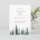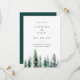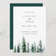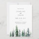 Elegant winter wedding save the date cards feature soft off-black lettering with a bottom border of hunter green watercolor pine trees. A chic choice for winter weddings in forest, mountain or woodland settings, these elegant flat save the date cards are easy to customise with your names, wedding date, wedding location, and website or an indication that a formal invitation will follow.