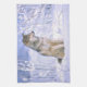 Timber Wolf sitting in the Snow, Canis lupus, Tea Towel