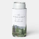 Celebrate your special day with this custom slim can cooler from the Timberline collection by Redwood & Vine Design Co. Designed to fit seltzer and slim cans, this cooler features lush watercolor pine trees and a scenic mountain view. Add your name, date, and location for a personal touch. A stylish and useful favour for winter weddings, forest venues, and outdoor celebrations alike.
