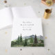 Make a lasting impression with this square wedding guest book from the Timberline collection by Redwood & Vine Design Co. The front features a tranquil green watercolor mountain landscape with pine trees, customisable with your names, date, and location. A stunning and practical addition to any rustic or outdoor wedding celebration.