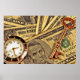 Business success poster with concepts of time and money. An old skeleton key, watch, and US currency in the background.