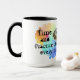Part of the Motivational mantra series, for teachers, coaches, personal development, or if you just like the image and text. Time and Practice change everything, is what I teach my art and gymnastic students. It works for any discipline. Decorative black script on a blossoming rainbow cloud, with a vintage clock. Original graphic design. Matching greetings card so your words will be remembered after the card has gone.