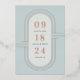 A simple and elegant save the date design with art deco influences, featuring your wedding date, names, and wedding location displayed on an arched central element adorned with rose gold foil line art.