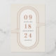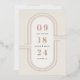 A simple and elegant save the date design with art deco influences, featuring your wedding date, names, and wedding location displayed on an arched central element adorned with rose gold foil line art.