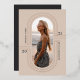 A simple and elegant graduation announcement design with art deco influences, featuring your graduate's name, graduation class year, and school, arranged around an arched element adorned with rose gold foil line art, with a vertical photo in the centre. Personalise the back with a custom message and an additional photo.