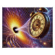 This breathtaking sci-fi motif shows a classic clock drawn into the depths of a black hole - a visual symbol of the spaghetting effect and the distortion of space-time. The dramatic representation of cosmic forces combined with surreal aesthetics makes this design ideal for posters, wall paintings, canvases or gifts. Whether as a decorative eye catcher in the living room, an inspiring work of art in the office or as a gift for space and physics fans - this motif attracts all eyes.